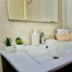 Lo spazioso appartamento si trova al piano terra e dispone di 1 camera da letto, una TV a schermo piatto con canali via cavo e una cucina completamente attrezzata con forno, lavatrice, frigorifero e piano cottura. Asciugamani e biancheria da letto sono forniti nell'appartamento. Per una maggiore privacy, l'alloggio dispone di un ingresso privato.