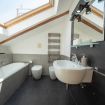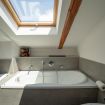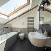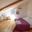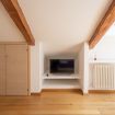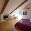 L’appartamento è mansardato con lucernai che danno molta luminosità all’ambiente ed è molto suggestivo.