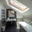 L’appartamento è mansardato con lucernai che danno molta luminosità all’ambiente ed è molto suggestivo.
