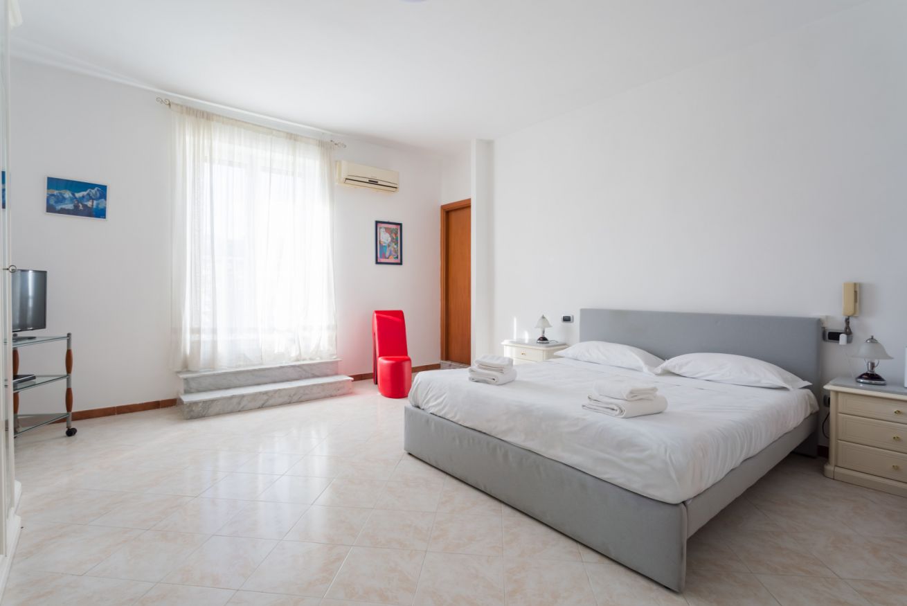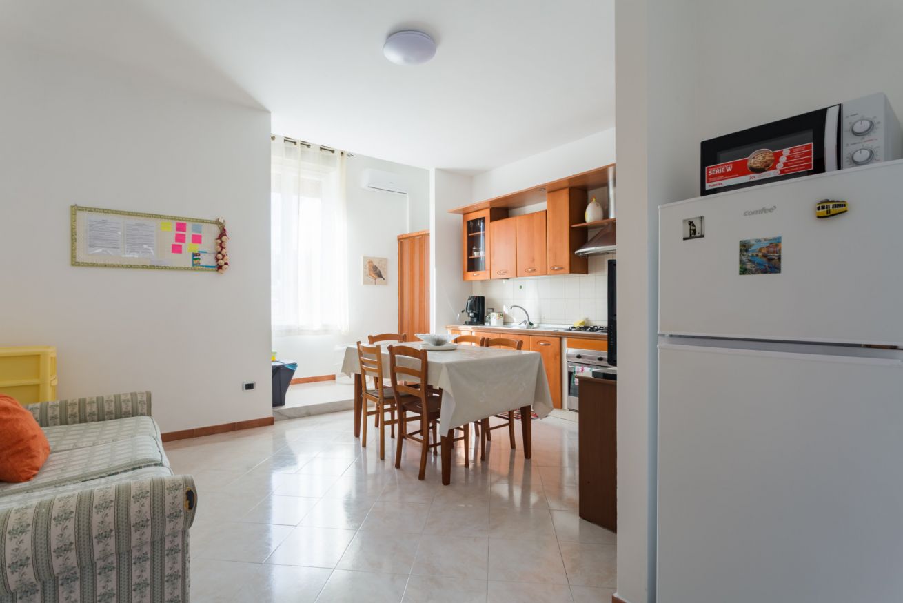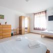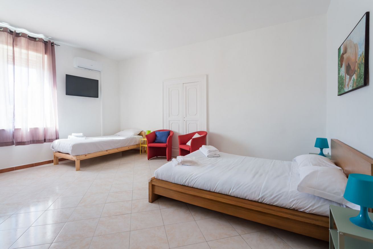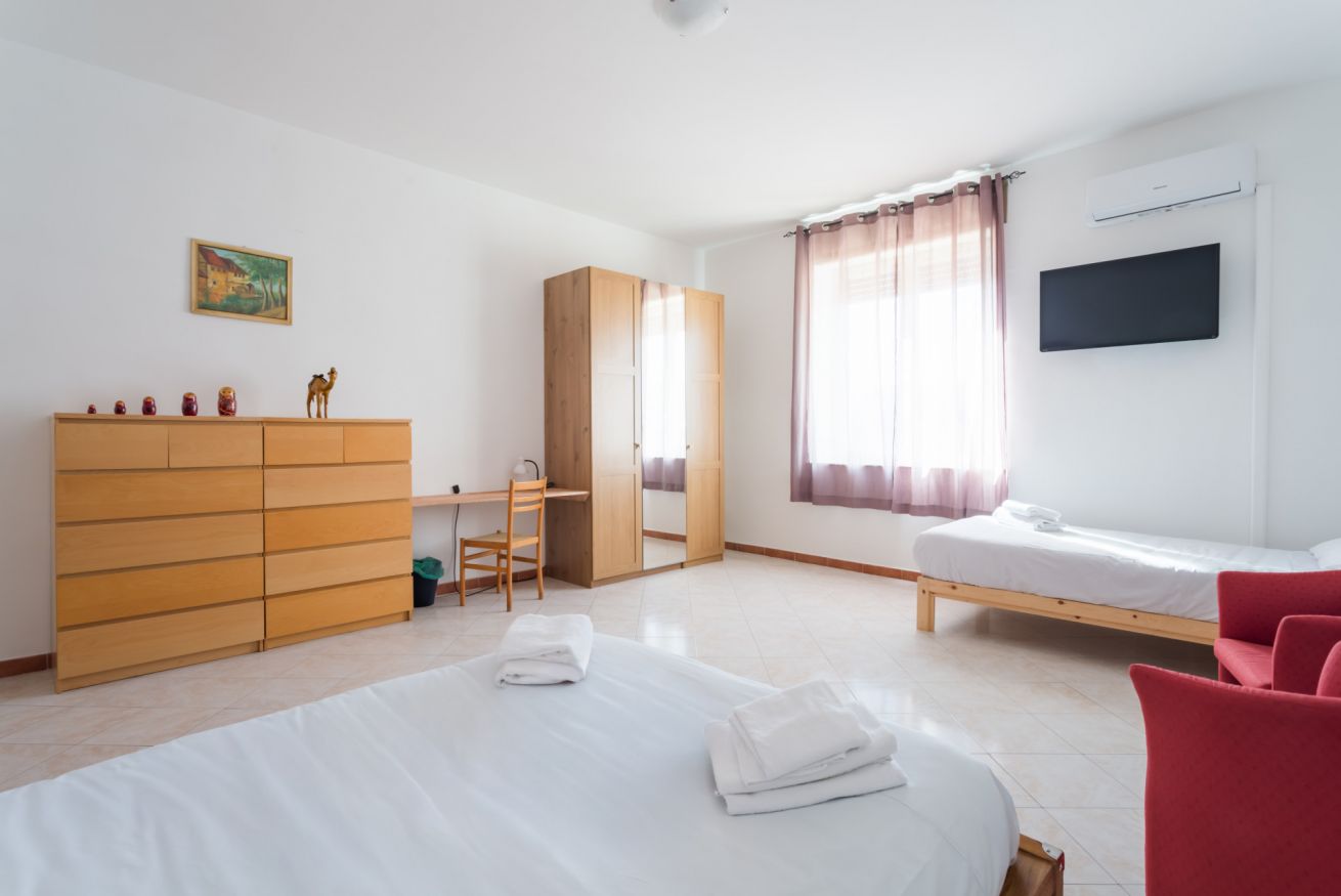 Un comodo appartamento pensato per gruppi o famiglie, con 3 camere da letto (una singola, una doppia, una tripla) più divano letto in cucina. Spazi ampi, cucina attrezzata e balcone con vista sulla città.