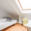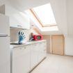 L’appartamento è mansardato con lucernai che danno molta luminosità all’ambiente ed è molto suggestivo.