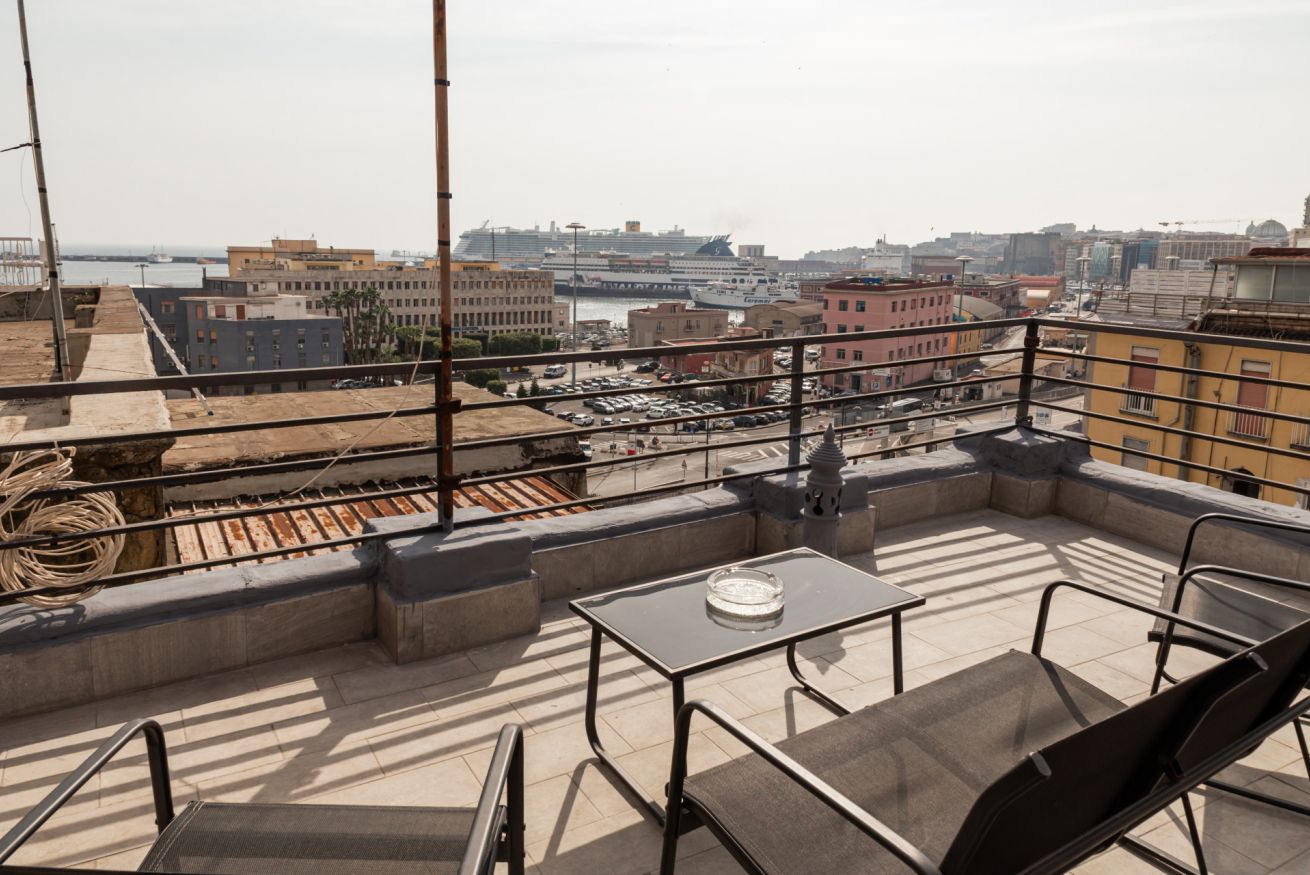 Accogliente appartamento con vista mare e terrazza, situato a circa 1,6 km dal Maschio Angioino. Dispone di 2 camere da letto, soggiorno luminoso, cucina attrezzata, 2 bagni, aria condizionata e WiFi gratuito. Ideale per famiglie o gruppi che vogliono soggiornare vicino al centro di Napoli con tutti i comfort.