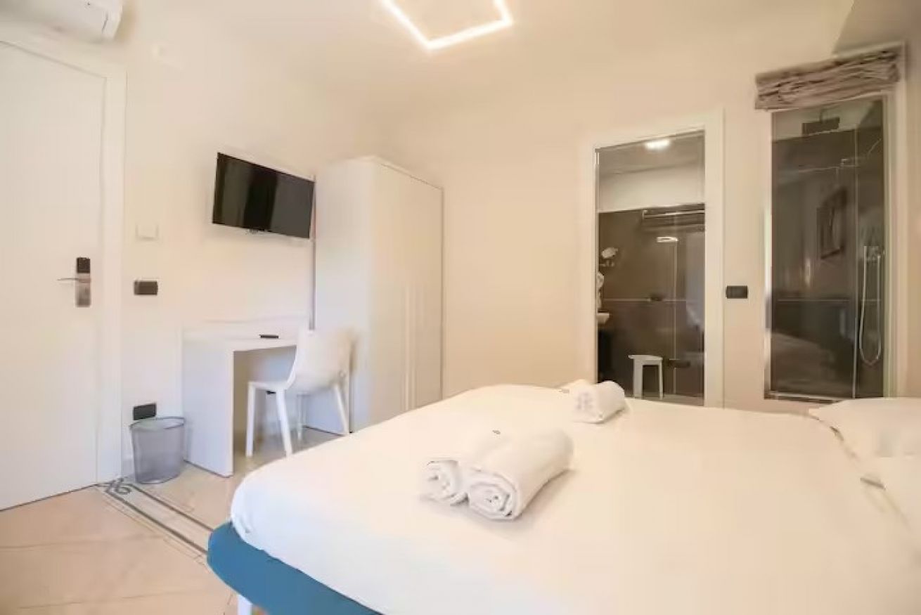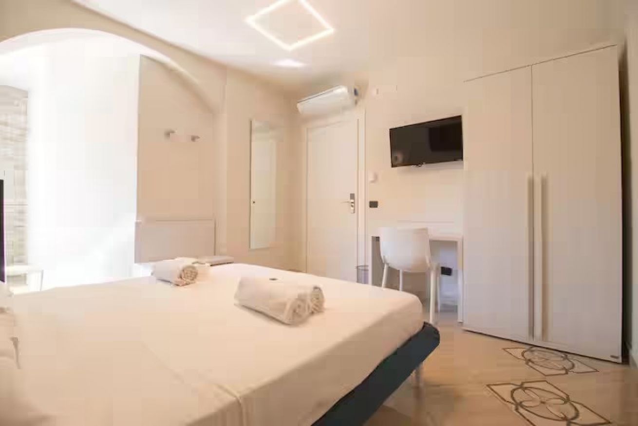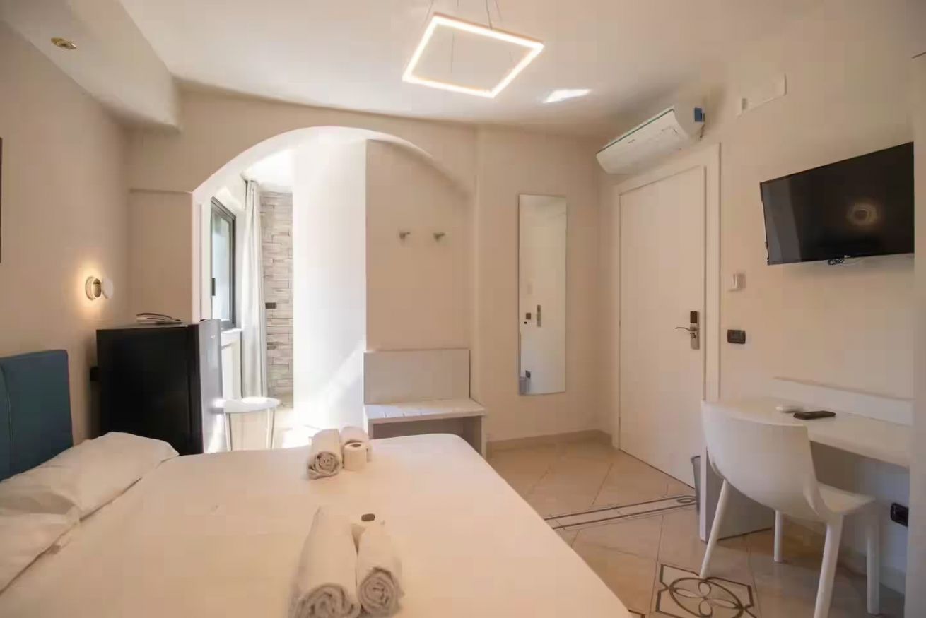 Elegante camera matrimoniale, recentemente ristrutturata, si trova in una posizione strategica, a pochi minuti a piedi dalla stazione di Napoli Centrale. È dotata di un comodo letto matrimoniale e di un bagno privato con doccia all’interno della camera, climatizzatore, Wi-Fi, telefono, phon, bollitore, tv satellitare Smart con canali internazionali. A disposizione degli ospiti anche un grazioso terrazzino condominiale condiviso, perfetto per momenti di relax.