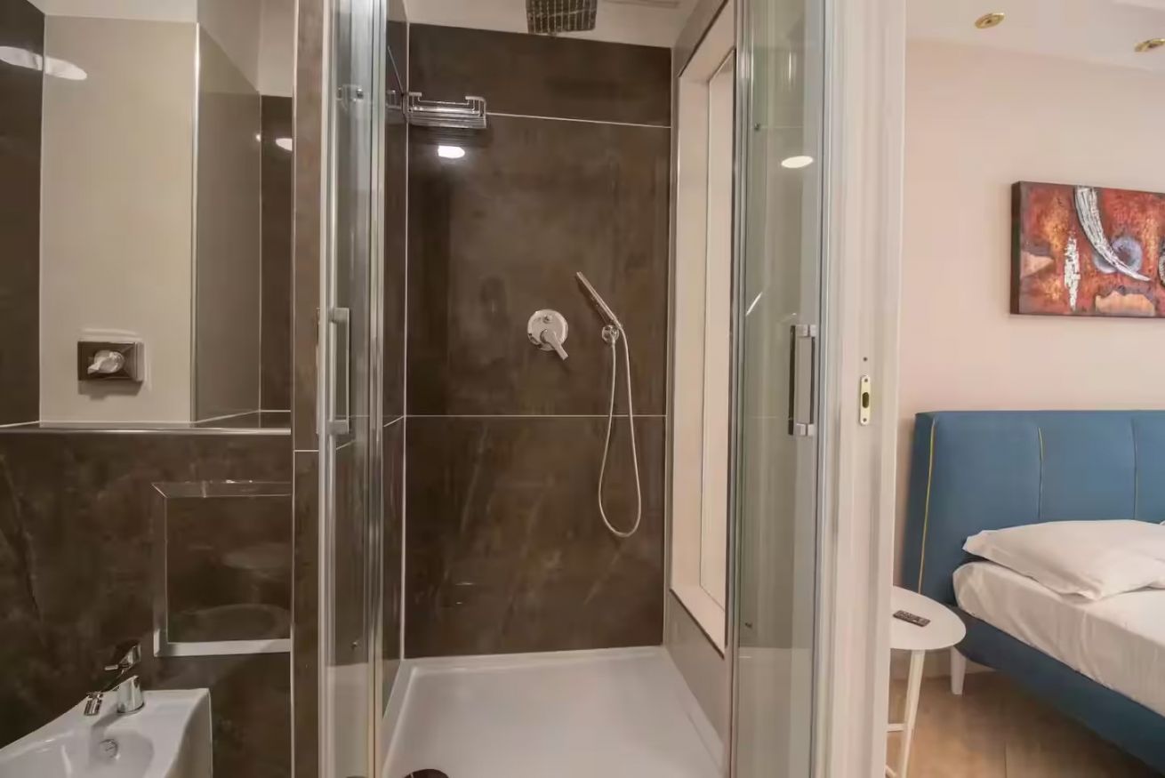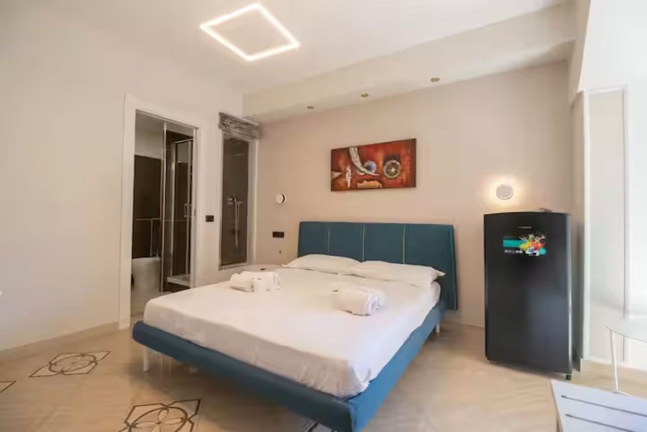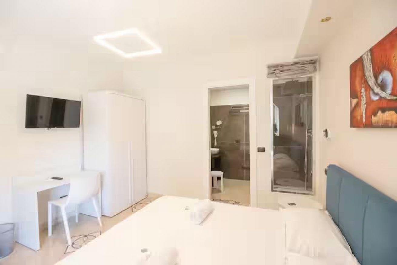 Elegante camera matrimoniale, recentemente ristrutturata, si trova in una posizione strategica, a pochi minuti a piedi dalla stazione di Napoli Centrale. È dotata di un comodo letto matrimoniale e di un bagno privato con doccia all’interno della camera, climatizzatore, Wi-Fi, telefono, phon, bollitore, tv satellitare Smart con canali internazionali. A disposizione degli ospiti anche un grazioso terrazzino condominiale condiviso, perfetto per momenti di relax.